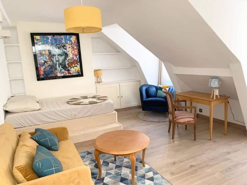 The retail space on the ground floor boasts excellent visibility and is situated in the vibrant heart of the Saint Germain neighborhood. Currently operating as a fashion store, it generates approximately 2,000 euros in monthly income. The retail area features 25 square meters of front space, along with an additional 25 square meters on the lower level. This retail location is highly sought after and in great demand within the community.