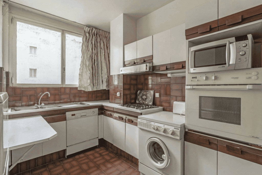 The property features an entrance hall opening onto a bright living room with unobstructed views over Avenue Foch and no overlooking neighbors. This space is complemented by a dining room and an independent kitchen. The sleeping quarters include a bedroom facing a courtyard for absolute quiet, as well as a bathroom with a toilet.